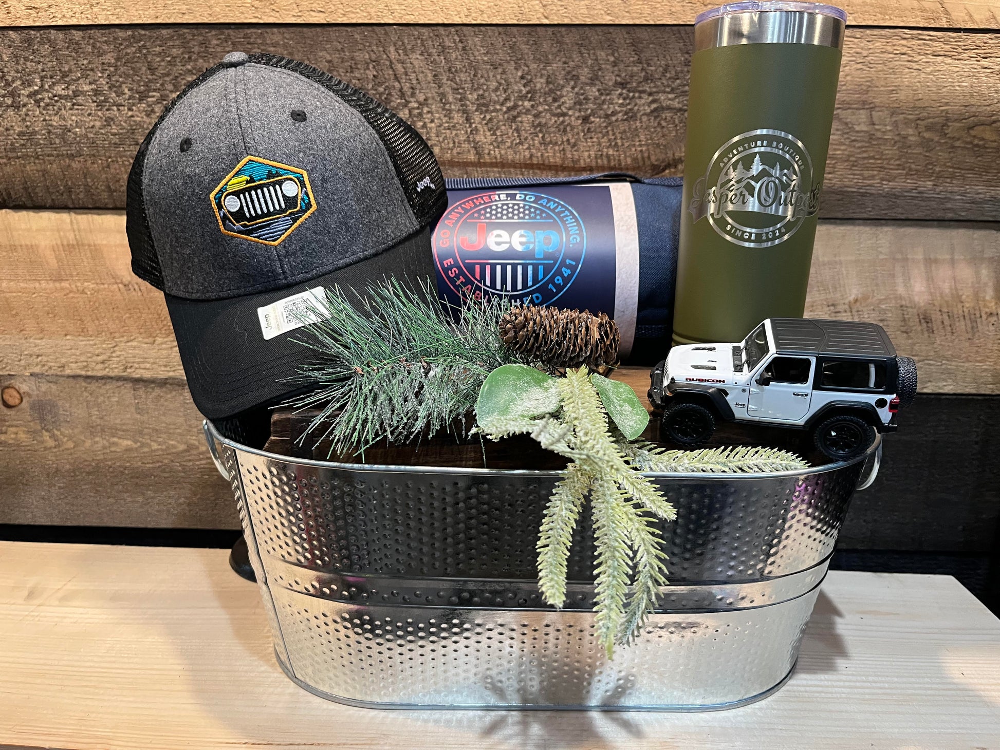 This awesome gift bundle is perfect for any Jeeper! Our set includes a Jeep Hat, Jeep roll up Sherpa, a small diecast Jeep, and a Jasper Outpost tumbler. We keep your head, heart and belly warm (or cold lol!). Jeep enthusiasts anywhere will enjoy this thoughtful gift.